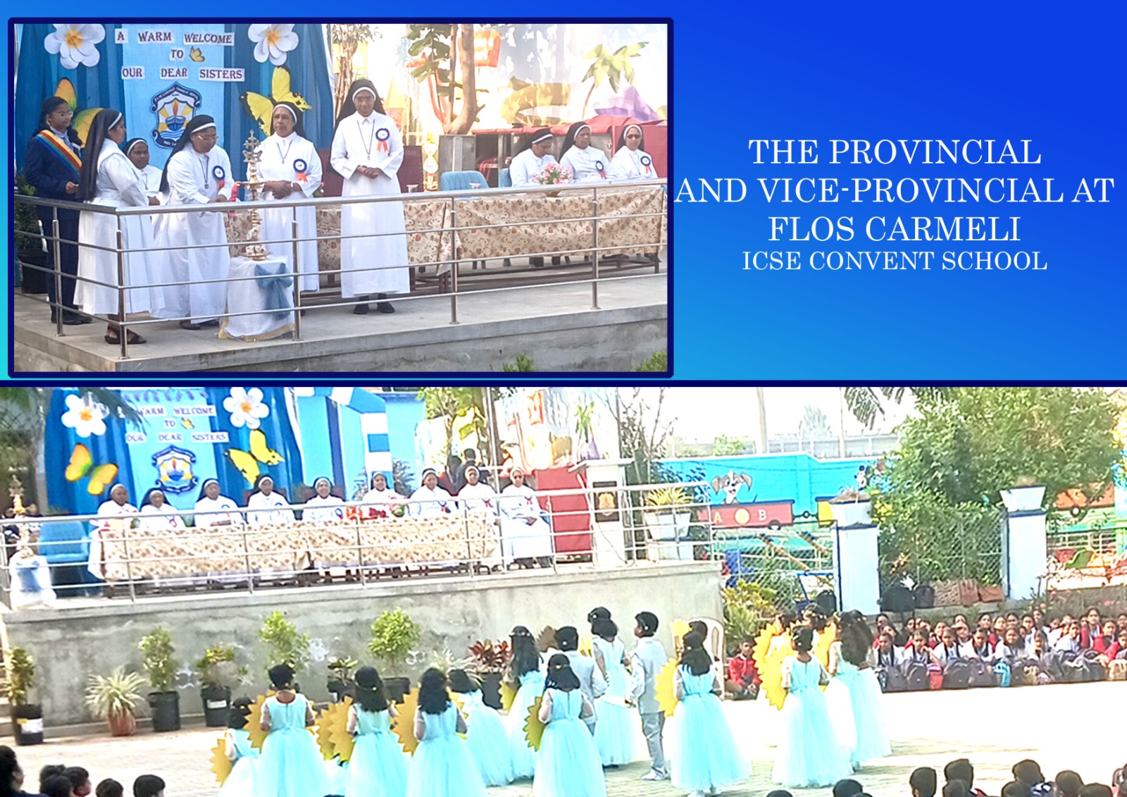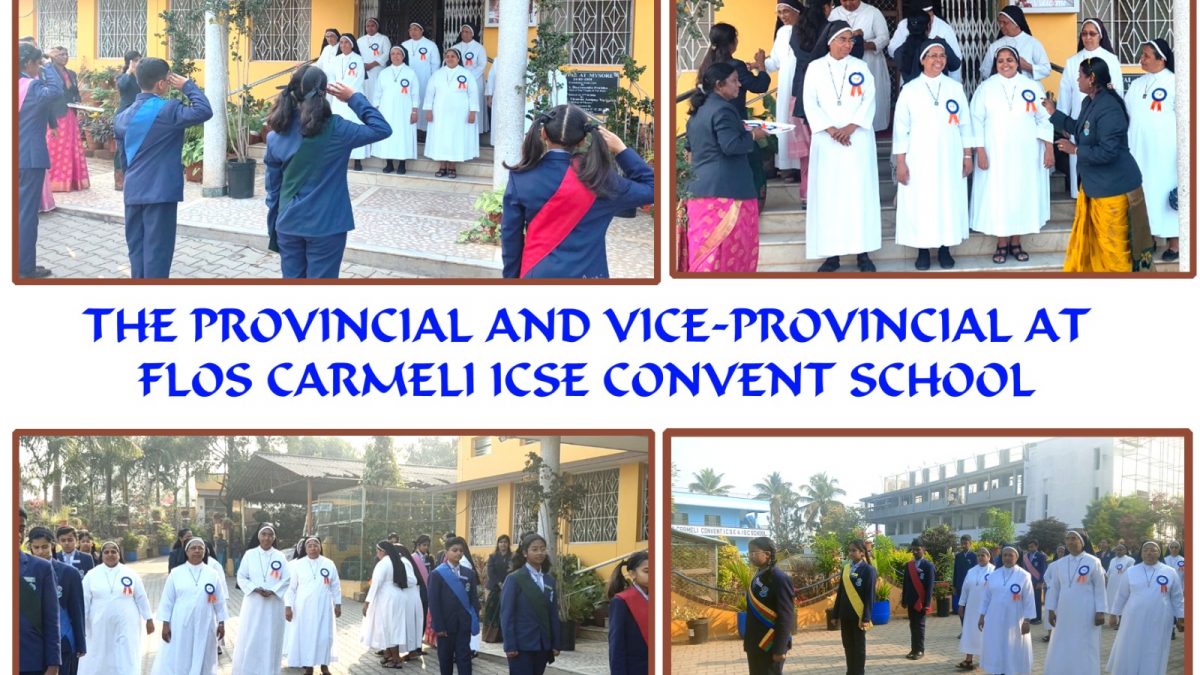 The Flos Carmeli ICSE Convent School had the esteemed privilege of welcoming the Provincial and Vice-Provincial to the school premises with great reverence and enthusiasm. The event was meticulously planned to honor the dignitaries and showcase the vibrant cultural spirit of the institution. The programme was a harmonious blend of tradition, spirituality, and artistic expression, demonstrating the school’s commitment to excellence in all spheres. The event commenced with a grand escorting ceremony, where the Provincial, Vice-Provincial, and other dignitaries were warmly received by the school authorities.